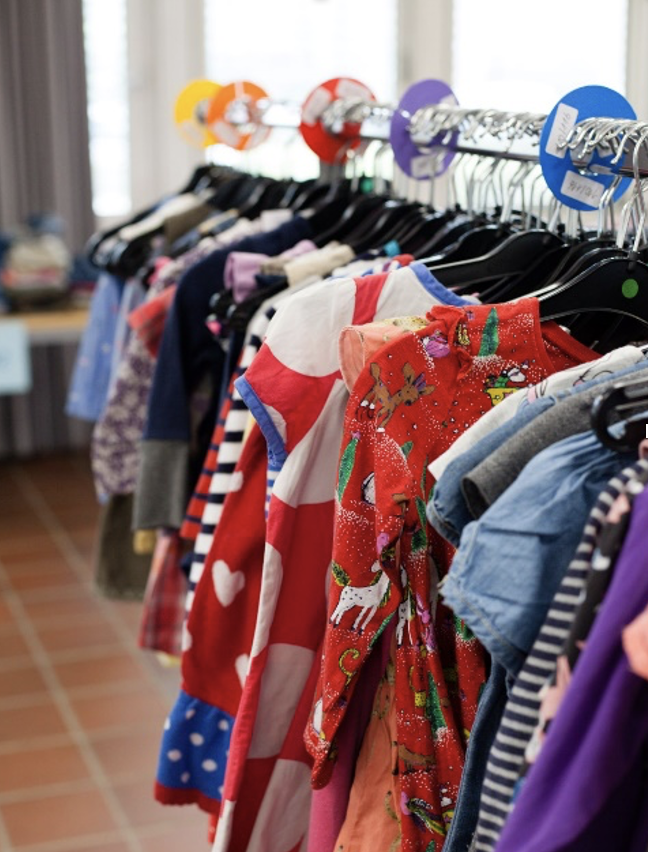 Kinderbasar des Schülerunternehmens “Lena & Leon” Einkauf in ruhiger Atmosphäre. Die Kleidung wird nach Größen sortiert angeboten. Es gibt ausreichend Platz für Kinderwagen. Es steht Kaffee und Getränke/ Snacks für die Besucher gratis zur Verfügung. Es gibt Spielmöglichkeiten für die kleinen Besucher.