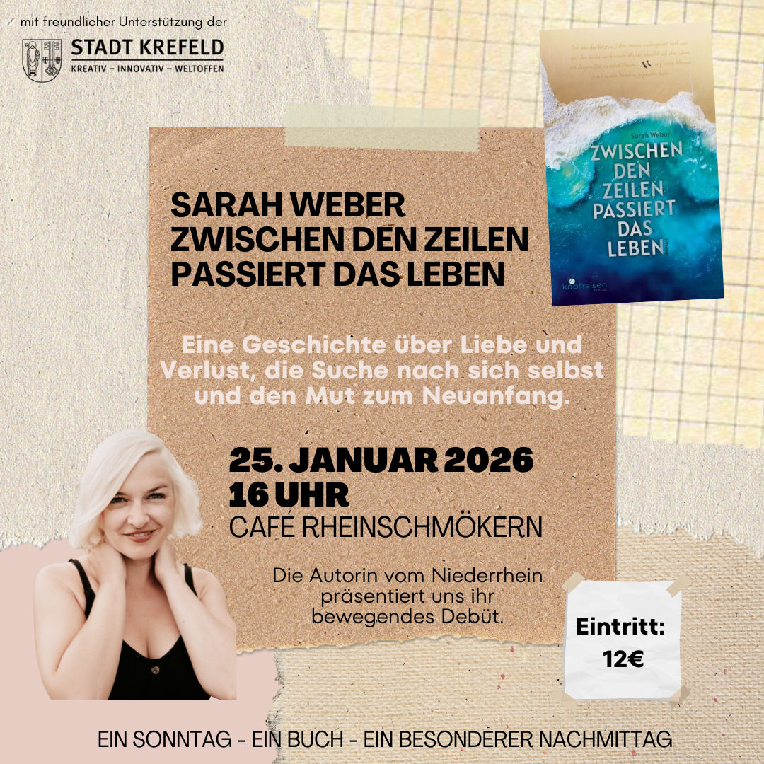 Café Rheinschmökern Alte Krefelder Str. 19, Krefeld, DeutschlandEinmal im Monat wird unser Café zum Schauplatz besonderer literarischer Begegnungen: Bei unserem Sonntagsschmöker erwarten euch Autor*innen mit ihren aktuellen Werken – live, nahbar und vielseitig. In entspannter Atmosphäre laden wir euch ein, den Sonntag mit Geschichten, Gesprächen und einem Getränk ausklingen zu lassen. Ob bewegende Romane, kluge Essays oder poetische Texte – hier erlebt […]